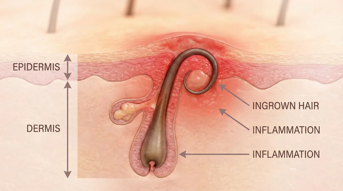 This is important because it tells us something fundamental: ingrown hairs are primarily a mechanical problem, not an infection problem.